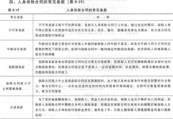 保险险种及保险公司的选择之人身保险合同的常见条款