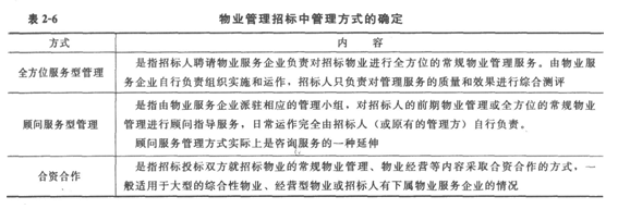 物业管理招标投标的内容与形式之物业管理招标中管理方式的确定