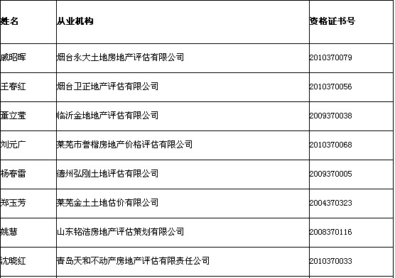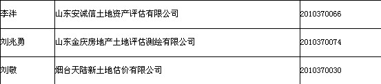 2013年山东土地估价师初始注册执业登记公示