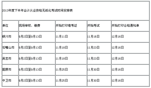 摘要 2013年下半年宁夏会计从业资格考试时间安排表。