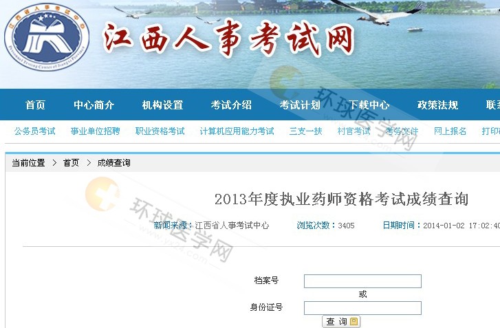 2013年度江西执业药师资格考试成绩查询开始,环球网校医学考试网第一时间发布执业药师考试成绩查询信息。