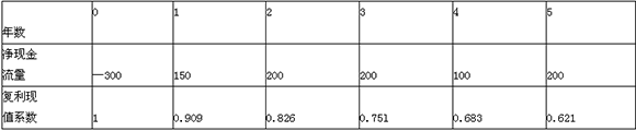 某公司计划对某一项目进行投资,投资额为300万元,期限为5年,每年净现金流量分别为150万元、200万元、200万元、100万元、200万元。假设资本成本率为10%。该项目的净现金流量及复利现值系数如下表所示。