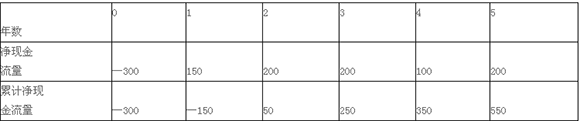 投资回收期=1+150/200=1.75(年)。