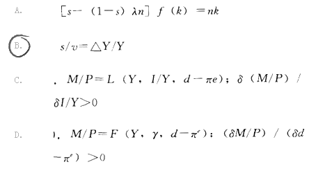 【解析】s/v=△Y/Y是哈罗德一多马模型的基本公式。