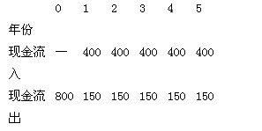 【解析】PA=一1000―800(P/A,8%,4)+100(P/F,8%,4)=3576.1(万元);PB=一800―900(P/A,8%,4)=一3780.8(万元)。PA―PB=205(万元)。