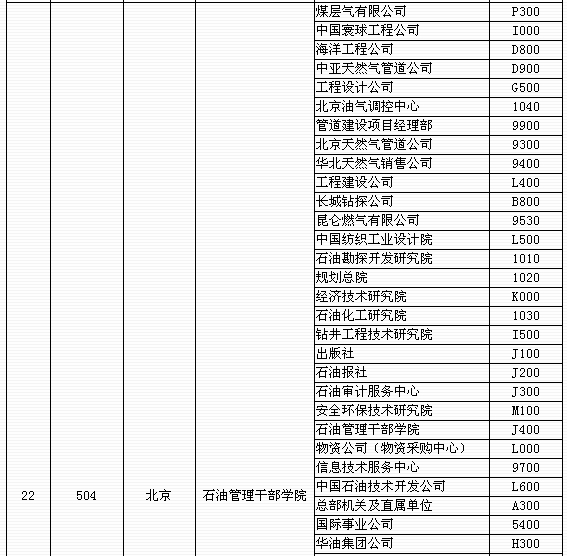 中石油职称考试考区设置及单位代码