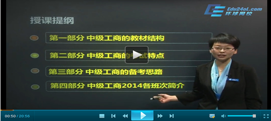 2014年经济师考试备考已经开始,环球网校2014年初中级经济师预习班课程已经开通,网校老师孙晶晶带领广大考生朋友们一起进行2014年中级工商预习,希望大家可以高效备考、一次通关!