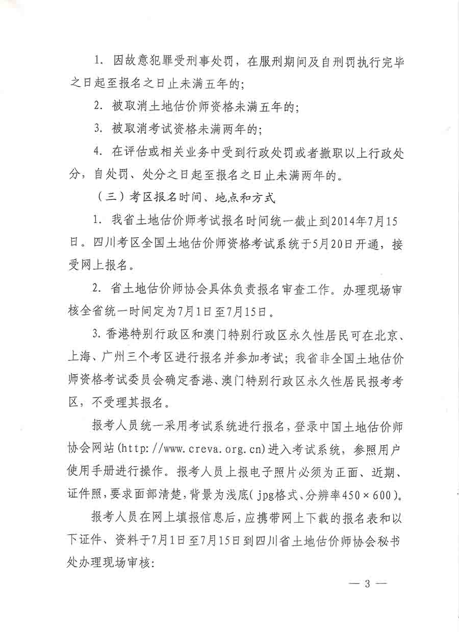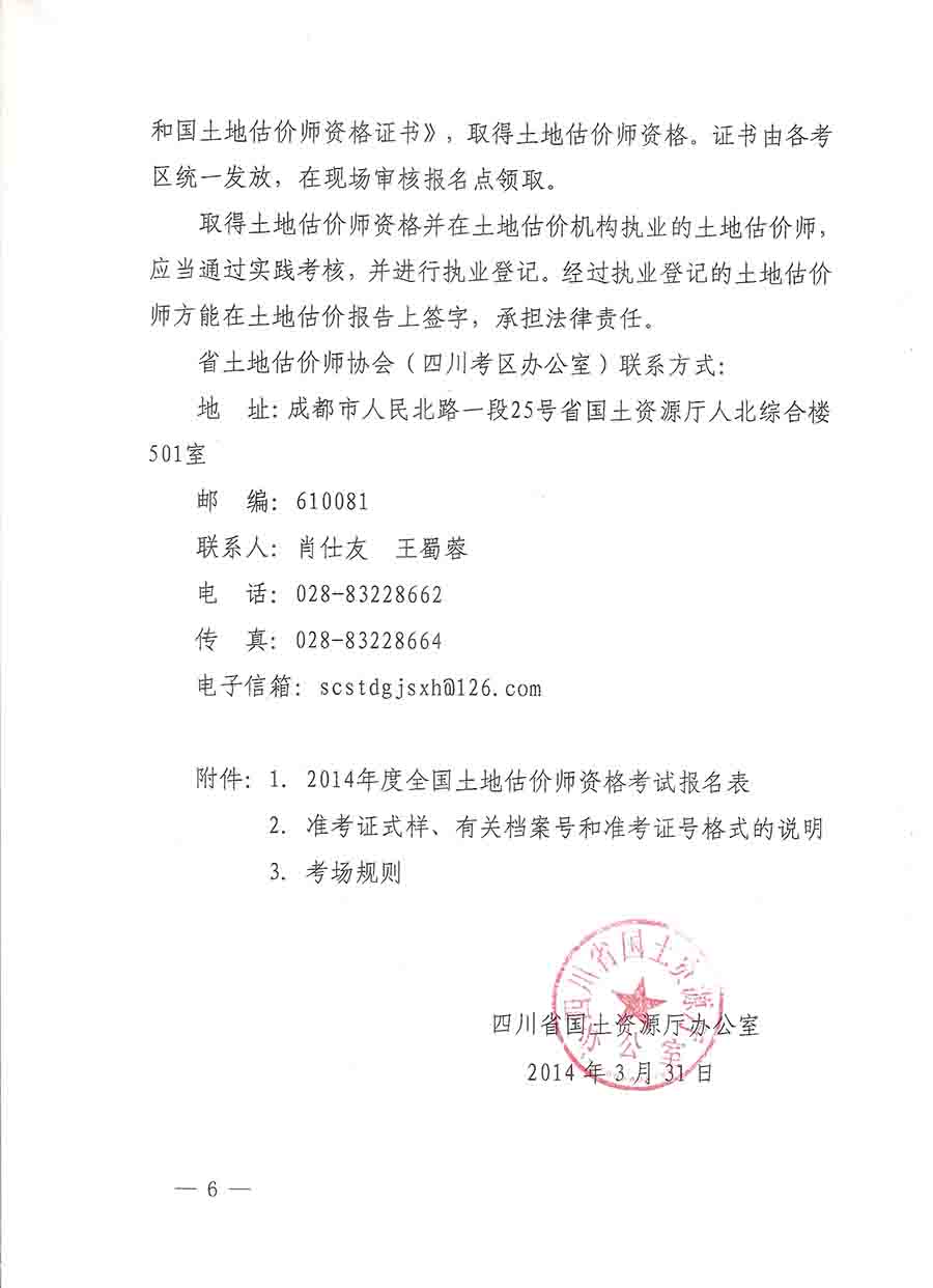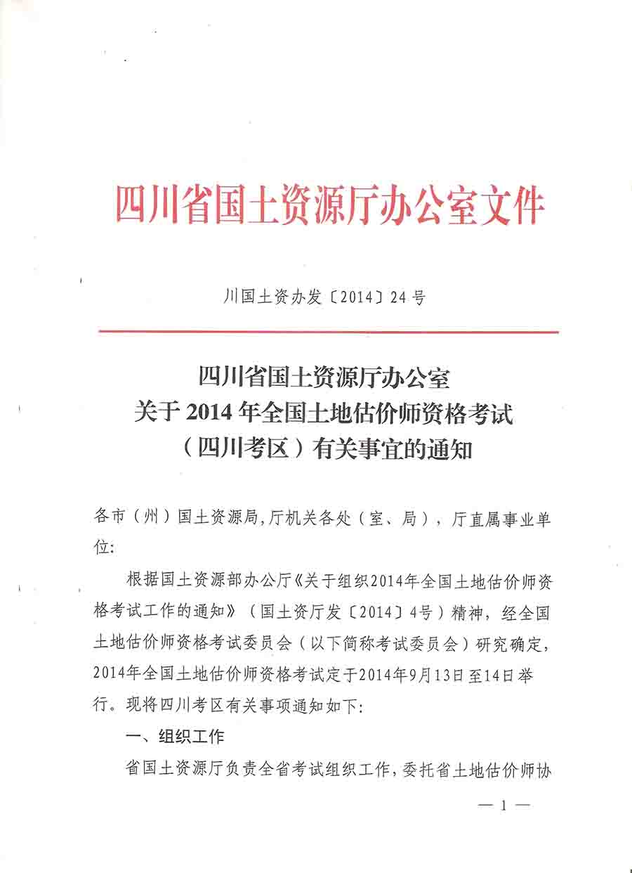 四川省2014年土地估价师考试有关事宜通知