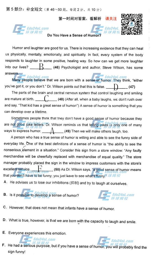 - 职称英语真题及答案卫生C补全短文2017-06-29