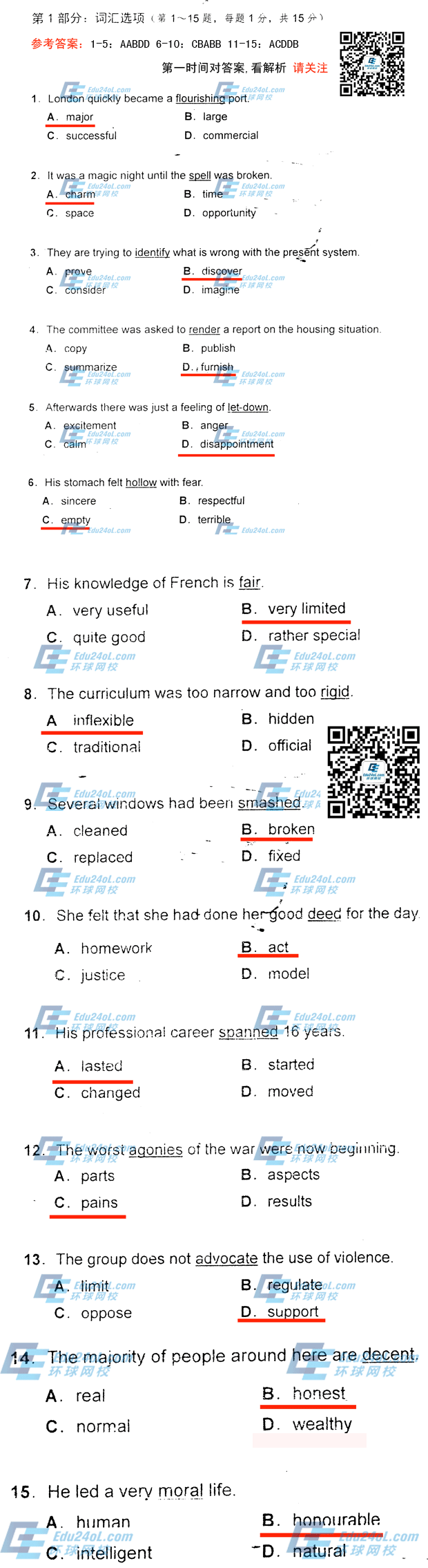 2014职称英语答案 职称英语报考条件 2015环球职称英语签约保过套餐