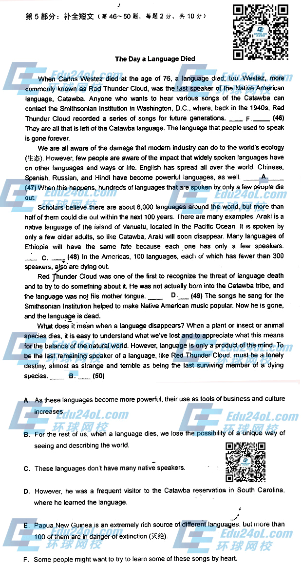 - 职称英语综合c完形填空真题及答案2017-07-03