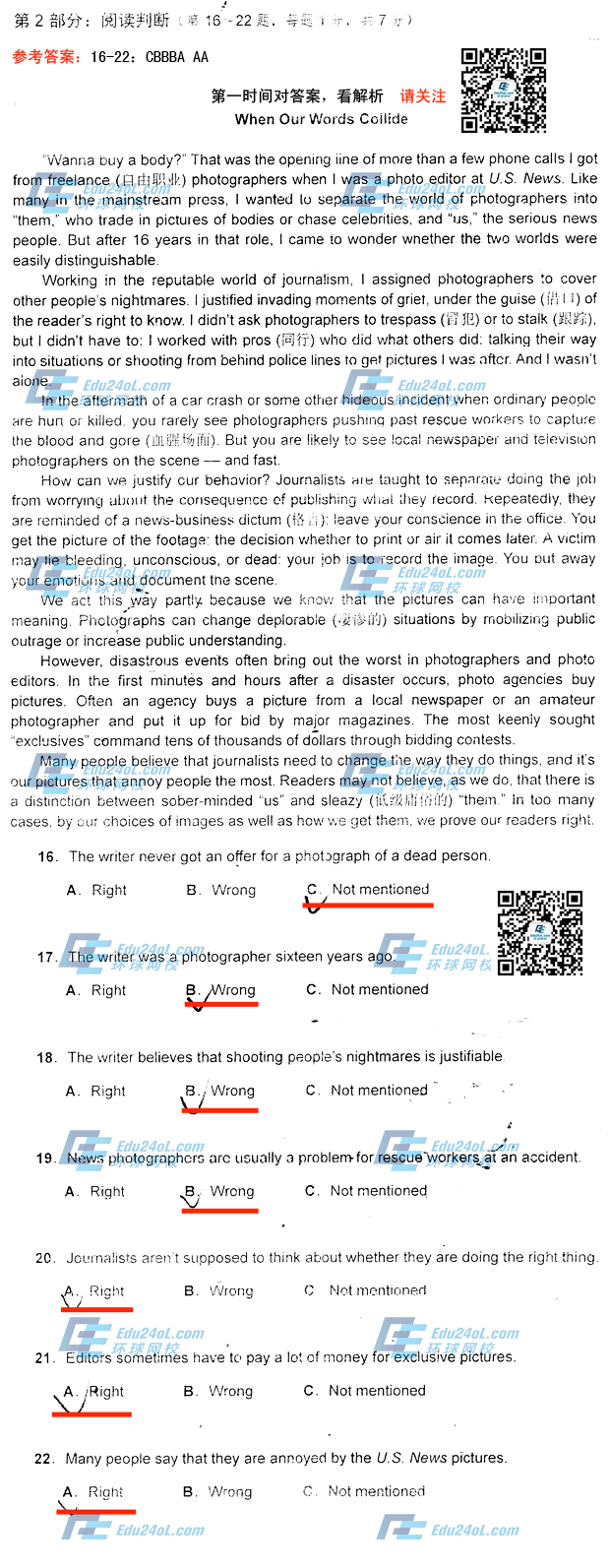 - 职称英语综合C阅读判断真题及答案2017-07-03
