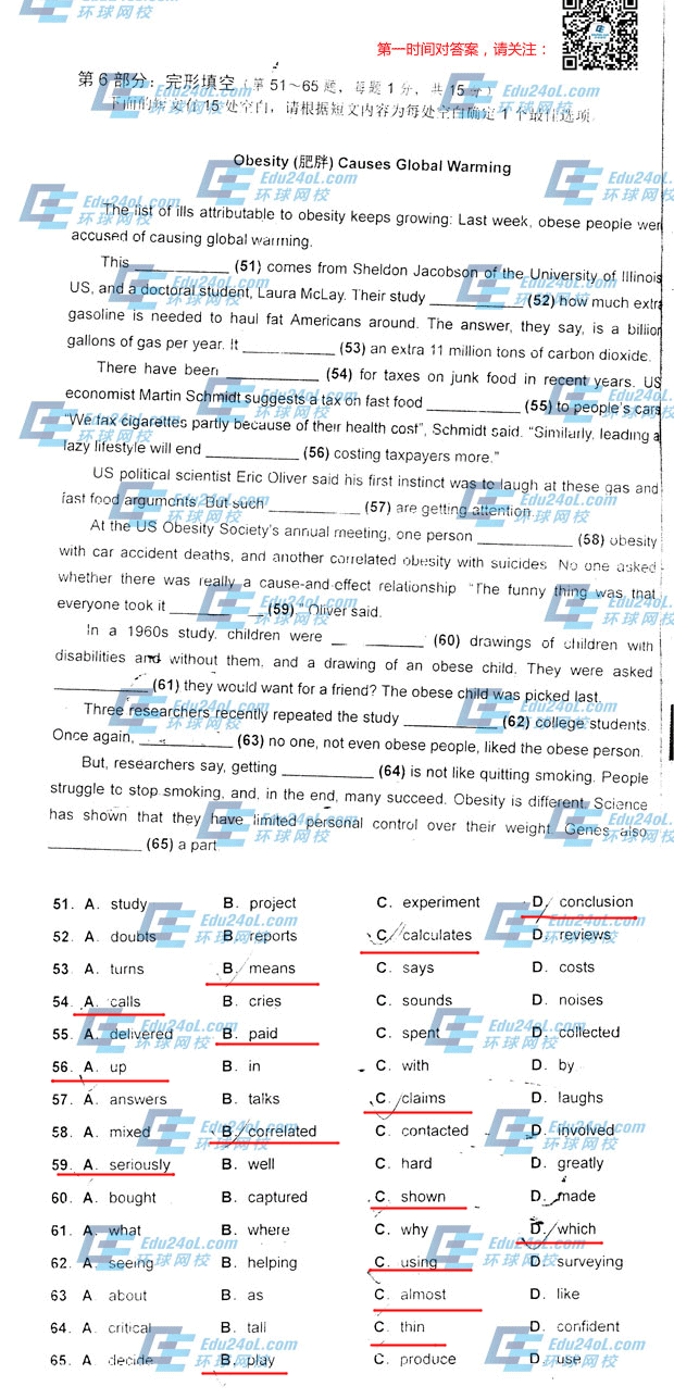 2014职称英语综合A真题答案(完整版、代码13)