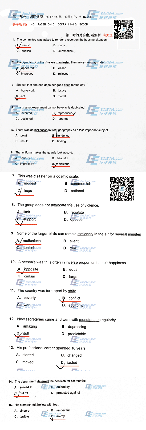 2014职称英语答案 职称英语报考条件 2015环球职称英语签约保过套餐
