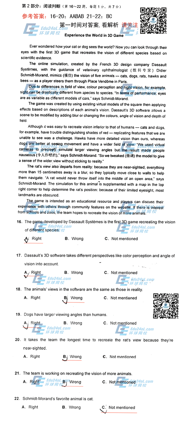- 职称英语综合C阅读判断真题及答案2017-07-03