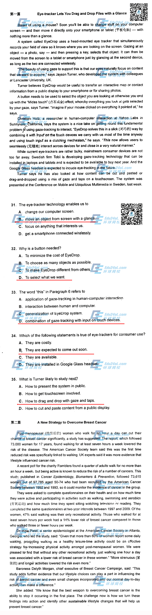 ?2014年职称英语考试真题原文出处汇总