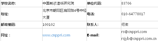 中国制浆造纸研究院面向全国招生,2015年计划招收硕士学位研究生5名