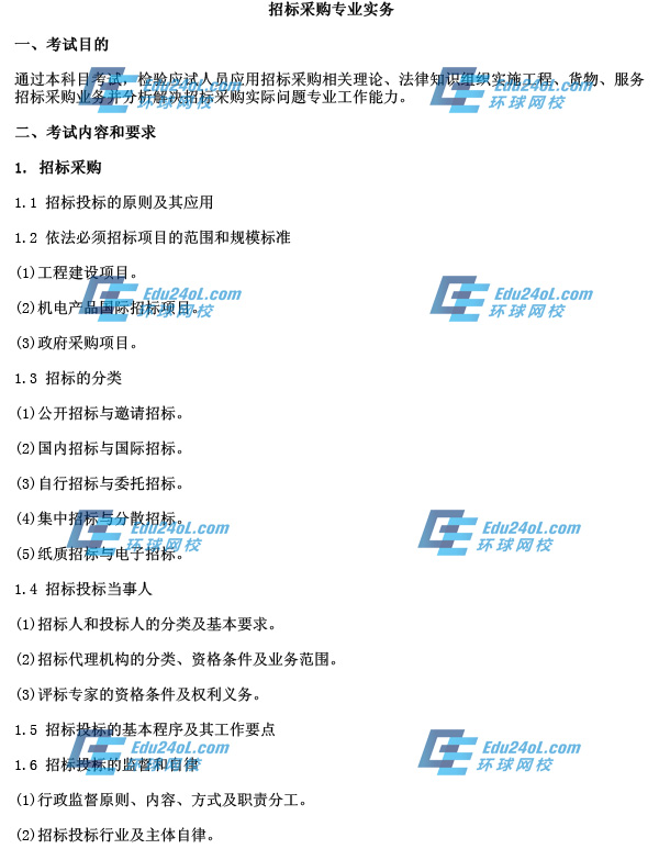摘要 本文内容为2015年招标师考试《招标采购专业实务》新版考试大纲,环球网校第一时间整理发布,希望各位考生及时查看。