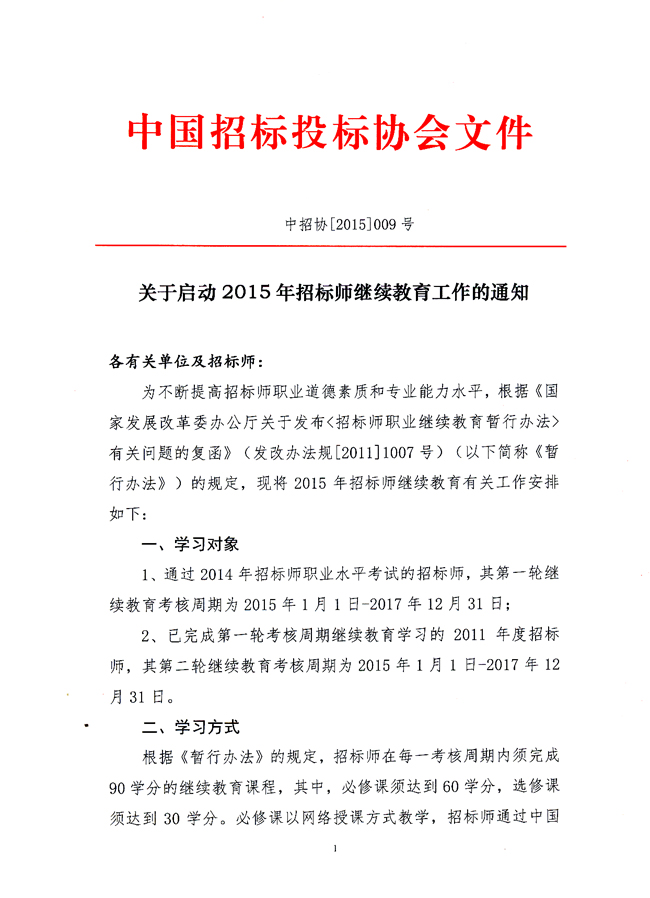 摘要 中国招标投标协会文件:关于启动2015年招标师继续教育工作的通知。