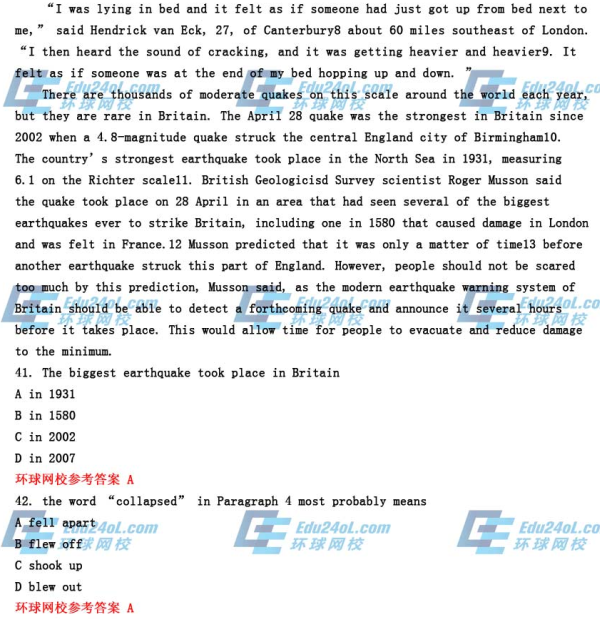 环球网校参考答案 B