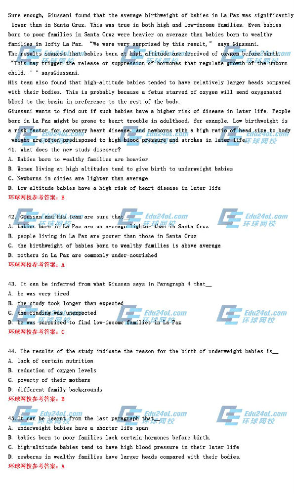 To find out more, Dino Giussani and his team at Cambridge University studied the records of 400 births in Bolivia during 1997 and 1998. The babies were born in both rich and poor areas of two cities: La Paz and Santa Cruz. La Paz is the highest city in the world, at 3.65 kilometers above sea level, while Santa Cruz is much lower, at 0.44 kilometers.