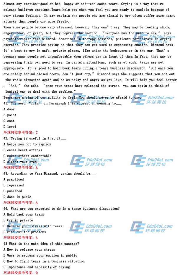 2015年职称英语综合C阅读理解答案及解析