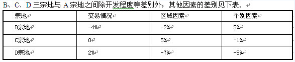 相对A宗地而言,其50年土地使用权价格因于发程度不同而有差异:达到“七通一平,,时地价比“五通一平”高100元/┫,达到“五通一平’’时地价比“三通一平”高60元/┫。根据以上资料,回答51~55小题的问题。