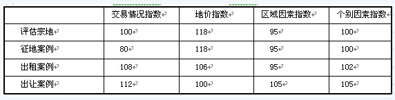 (6)征地、出租和出让宗地与待估宗地比较情况,除开发程度差异外,其他因素比较表为: