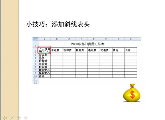 在使用excel表时,我们经常会用到添加斜线表头的功能(如图1显示)。但是往往在我们添加的时候,不是斜线遮住了字,就是斜线划分的位置不合理。那么,处理这样的情况有什么好办法呢?现在网校小编教您添加斜线表头的小技巧,解决您工作中的小难题。