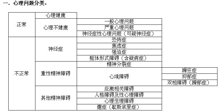 1、 严重心理问题:心理冲突的性质是常形,(1)现实性的;(2)道德性的。