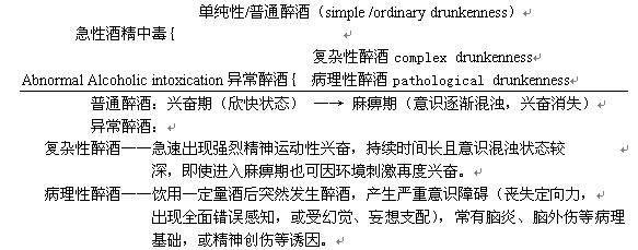 瑞士学者宾德(Binder)认为复杂性醉酒是介于普通醉酒与病理性醉酒之间的急性中毒模式。