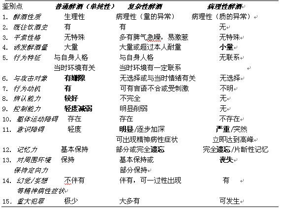 复杂性醉酒发病多有人格障碍为基础,饮酒量大,意识障碍一般超过普通醉酒,行为与平时完全异质;处于较深的意识浑浊状态和强烈的运动性兴奋。在不愉快的基本情绪背景下,又有严重的的运动性兴奋,易于激惹和冲动,多出现激惹性报复行凶行为――原始反应、短路反应。