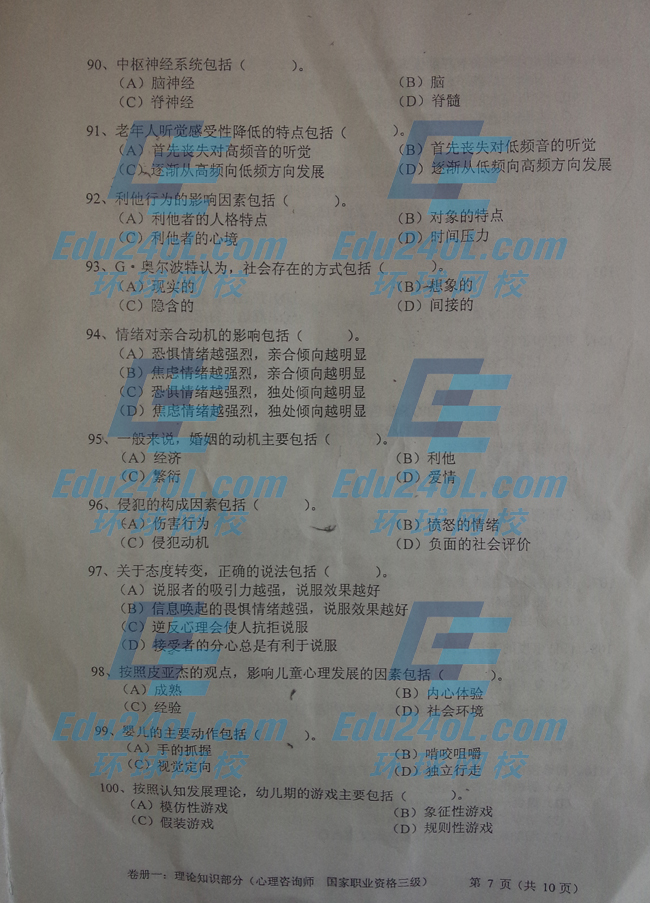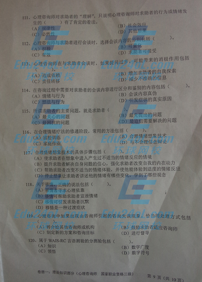 摘要 2014年11月三级心理咨询师考试理论知识真题,由环球网校心理咨询师频道独家整理发布,如需转载请注明出处!