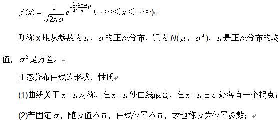 正态分布是描述连续型随机变量的一种重要概率分布。若随机变量x的概率密度函数为: