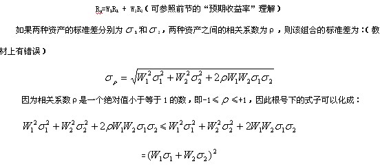根据上述公式可得,当两种资产之间的收益率变化不完全正相关( <1)时,该资产组合的整体风险小于各项资产风险的加权之和,揭示了资产组合降低和分散风险的数量原理。
