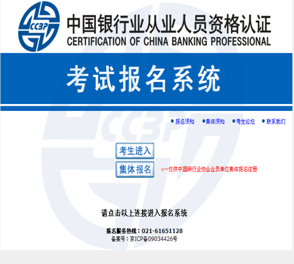 银行从业资格考试全国统一报名入口