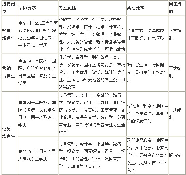 2013年浙江省瑞丰银行校园招聘启事