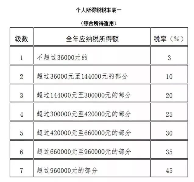 (一)综合所得,适用百分之三至百分之四十五的超额累进税率(税率表附后)