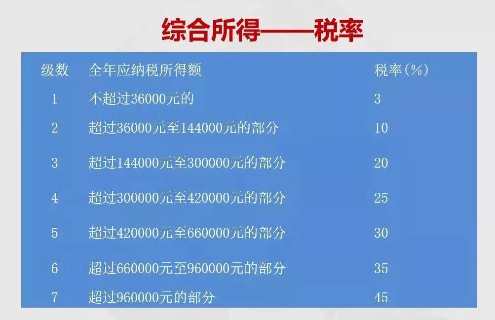 “综合所得,适用百分之三至百分之四十五的超额累进税率。”