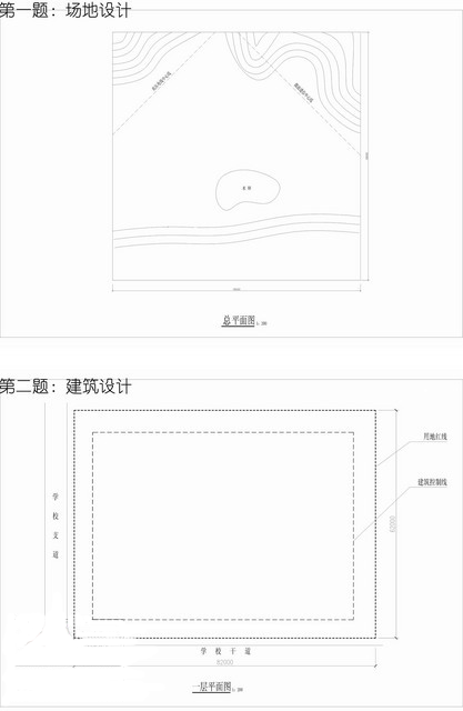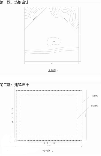 作图要求:在地形图(试卷3上)上画出一层平面(和总图一起布置);