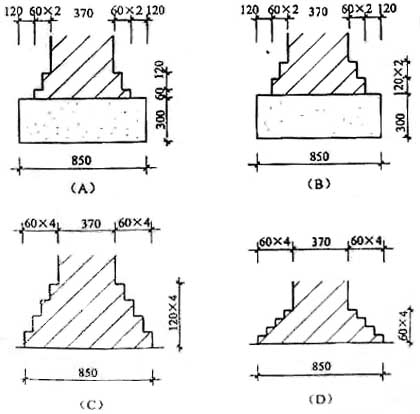75.砖基础要设大放脚,如果工程荷载和地基条件相同,试问下列哪种基础构造既安全又经济?