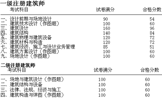 2008年全国一、二级注册建筑师考试合格标准如下: