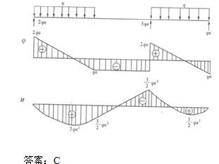 提示: (A) QE右=0,(B)QD右/2,(C)Mc=0,(D)MD=Pa/2,只有C正确。