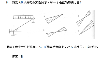 A 受拉轴力 B 受压轴力 C 无内力 D 剪力