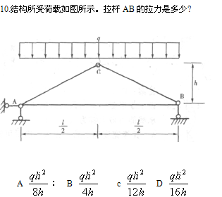 提示:从C处用截面法截开,取半个结构为研究对象,再对C点取矩计算即得。