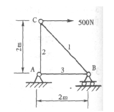 2. 图示桁架杆1、杆2、杆3所受的力分别为( )。