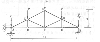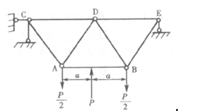 提示:用节点法,通过E点分析可知CE杆受压, CD为零杆,AC杆受力性 质与CE杆相同。
