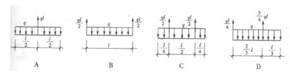 14. 一预制构件单位长度重量为q,长度为l,在图示4种吊装方式中,哪一种方