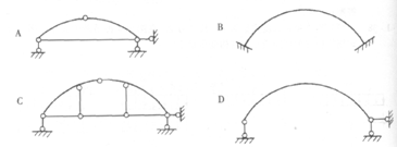提示: 当结构受竖向荷载时,D图无水平反力。而A、C图中的水平拉杆中有水平拉力。