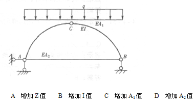 17. 图示拱具有合理拱轴线,下述哪一种措施对于减少C点的竖向位移是无效的?